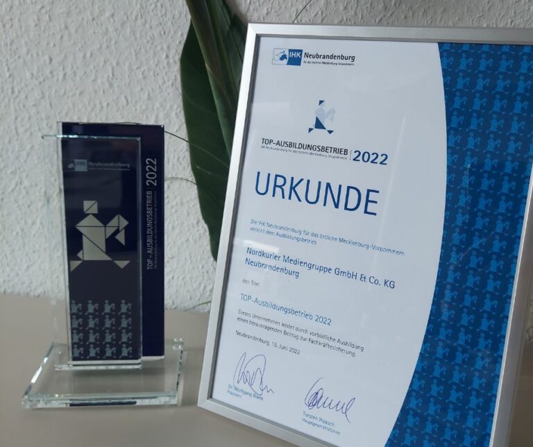 Die Ausbildung in der Nordkurier Mediengruppe ist und bleibt top! Zum Beweis dafür gab’s jetzt zum siebten Mal (!) in Folge von der Industrie- und